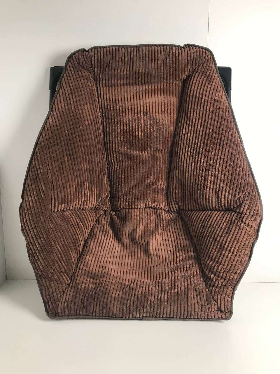 містить коричневий підкладений стілець із м'якого 100% поліестеру з полімерною/вініловою підтримкою