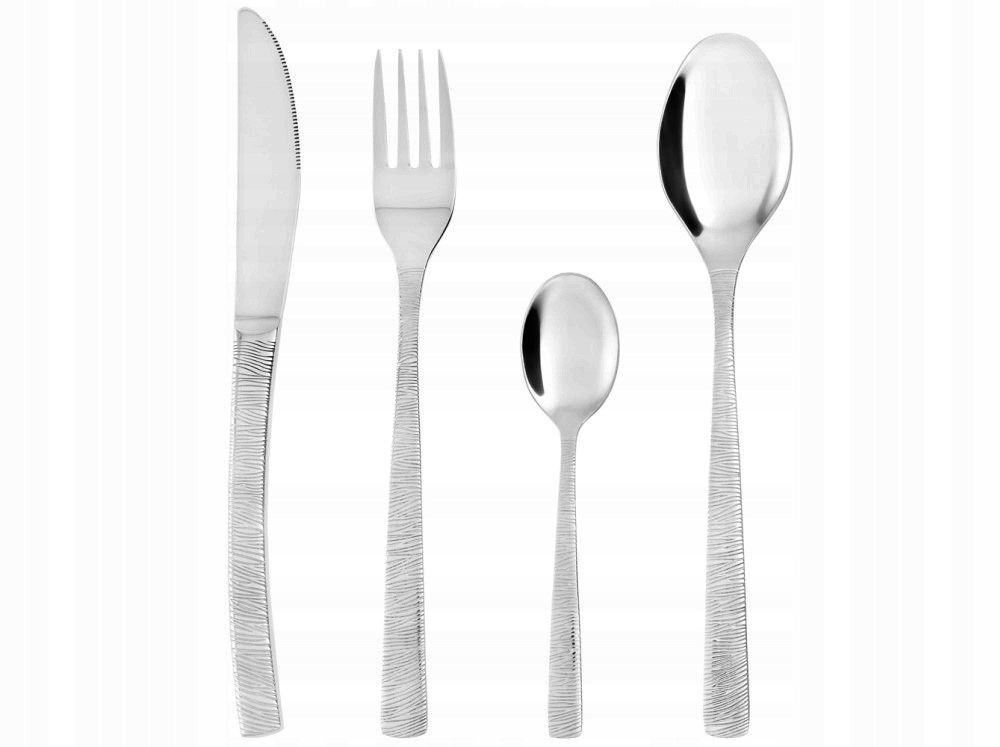 Набір 24-елементів столових приборів, виготовлених з високоякісної нержавіючої сталі в сучасному стилі. Елегантність у найчистішому виданні. Вони прекрасно гармонізують сучасною столовою заставою. Ручне полірування робить поверхню блискучою. Проста, але оригінальна форма ручки, обережно прикрашена смугами, додає витонченість та сучасний характер.
