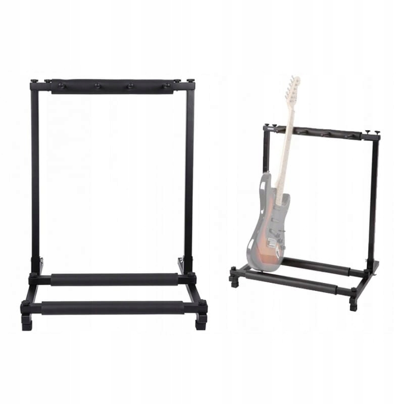 Зручна і міцна підставка для 3 гітар, виготовлена з чорного металу. Він має стійку конструкцію і додатково має кронштейни, покриті піною, яка захищає гітару від подряпин.