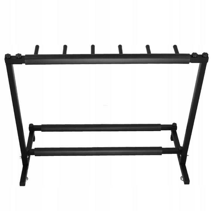 Зручна і міцна підставка на 5 гітар, виготовлена з чорного металу. Він має стійку структуру і додатково має кронштейни, покриті піною, яка захищає гітару від подряпин. Конструкція підставки забезпечує комфортне використання, а основа гарантує стійкість всієї конструкції, а також додатково оброблена протиковзкими ковпачками, які захищають від ковзання, а підлогу - від подряпин. Виготовлений із міцних та естетичних матеріалів, він чудово підійде як вдома, так і як виставковий експонат.