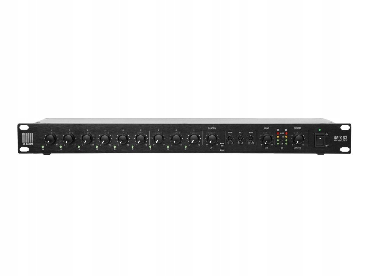 Стерео попередній підсилювач для професійних програм, відтворення фонової музики, звукових систем і розважальних закладів. Він має 6 збалансованих входів COMBO XLR з вибором посилення MIC/LINE, 3 стереовходи RCA. Фантомне живлення активується зовнішнім перемикачем над кожним універсальним входом COMBO XLR. Пріоритет першого універсального введення. Регулювання низького, середнього і високого тону. Моніторинг та контроль рівнів головного входу. Світлодіод для індикації вхідного сигналу, вимірювач рівня вхідного сигналу. Збалансований стерео вхід XLR. Збалансований 6,3 мм. TRS Jack моно і вхід для монітора. Стерео RCA, вихід для запису. Ідеально підходить для живлення зовнішніх джерел постійного струму 24 В.