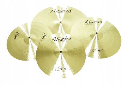 Тарілки Amedia Classic дуже універсальні, їх можна використовувати в багатьох музичних жанрах. Набір складається з - чудового, злегка шумного і красиво "тикаючого" хіхату, тріску з швидким відгуком і великої їзди з широким діапазоном звуків. У пропозиції Amedia тільки тарілки, викувані вручну на батьківщині цього ремесла в Туреччині. Вони виготовлені з бронзи B20 - сплаву, який вважається найкращим для виробництва ударних листів завдяки своїм акустичним властивостям. За помірну ціну ми отримуємо обладнання, яке за звуком перевершує конкурентоспроможні продукти аналогічного цінового діапазону.