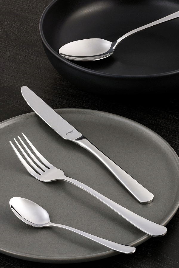 СУЧАСНІ ПРОСТІ ОБІДНІ ПРИБОРИ AMEFA, ЩО ПІДХОДЯТЬ ДО БУДЬ-ЯКОЇ ПОРЦЕЛЯНИ, У ПОДАРУНКОВІЙ КОРОБЦІ