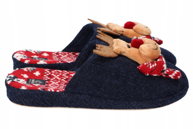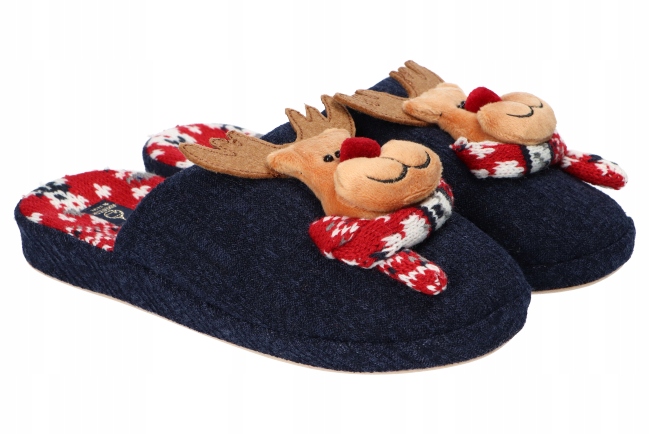 AMERICAN CLUB SL11 ТЕПЛІ ТАПОЧКИ РІЗДВЯНІ ТАПОЧКИ З ОЛЕНЯМИ ТЕМНО-СИНІ 39