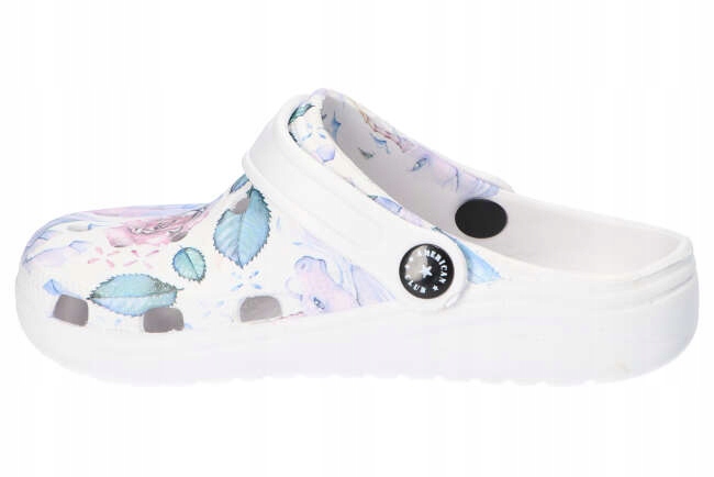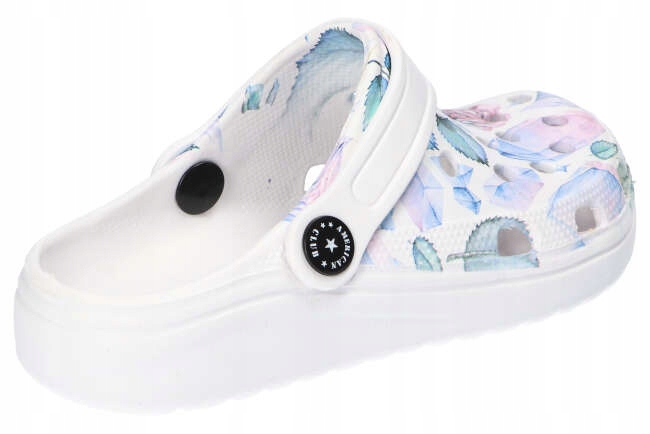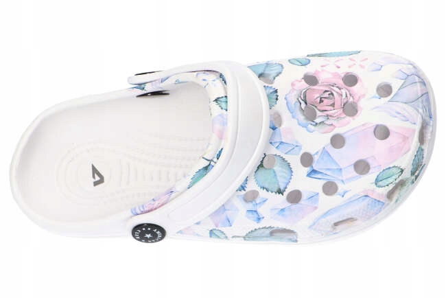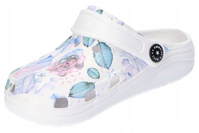 Взуття ідеально підходить для повсякденного використання, а також для святкових поїздок. Світлі шльопанці мають модний, оригінальний, квітковий малюнок і стабільний, білий, пінопласт, антипліп -дно. Взуття забезпечують комфорт та комфорт використання та виглядають дуже приємно на нозі.