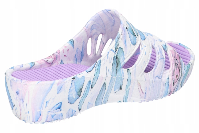 Взуття ідеально підходить для повсякденного використання, а також для святкових поїздок. Шльопанці мають модний, квітковий малюнок і стабільну, піну, не -слизну дно. Взуття забезпечують комфорт та комфорт використання та виглядають дуже приємно на нозі.