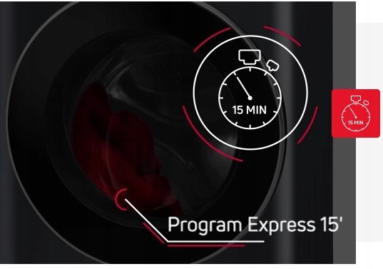 Хочете оновити свій одяг до майбутнього сезону чи швидко випрати трохи забруднений одяг? З програмою Express 15' ви позбудетеся від неприємних запахів, пилу та легкого бруду всього за 15 хвилин. Програма включає всі три етапи прання: основне, полоскання, віджимання. Це практичне рішення, призначене для економії часу та енергії. У деяких моделях ви можете використовувати функцію сушіння для сушіння одягу.
