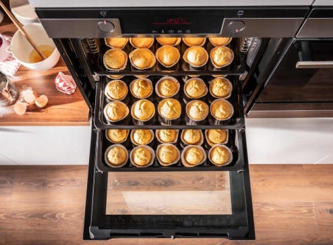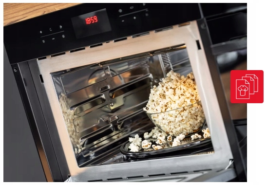 Ідеальне випікання залежить не лише від майстерності, але, перш за все, від правильної духовки. З BakingPro System™ ви можете забути про нерівномірно пропечене тісто або занадто сухе м'ясо! Це все завдяки точно розробленому розподілу тепла та стабільній температурі всередині камери духовки, які гарантують, що ваші пироги ніколи не будуть недопеченими в середині або підгорілими з боків. Навіть осколки біля скла прожаряться ідеально завдяки використанню більших нагрівачів і пересуванню їх вперед. Камера також стала більшою і має більше рівнів випікання - тепер ви можете вбити кількох зайців одним пострілом! Піддони також збільшені, а нова кришка вентилятора пришвидшує нагрівання - до 150°C всього за 3 хвилини! Нове освітлення на верхній стінці забезпечує набагато кращу видимість випічки, ніж раніше. Новітні технології в новому вигляді - для небаченої раніше якості випічки! Кожен день на вашій кухні!