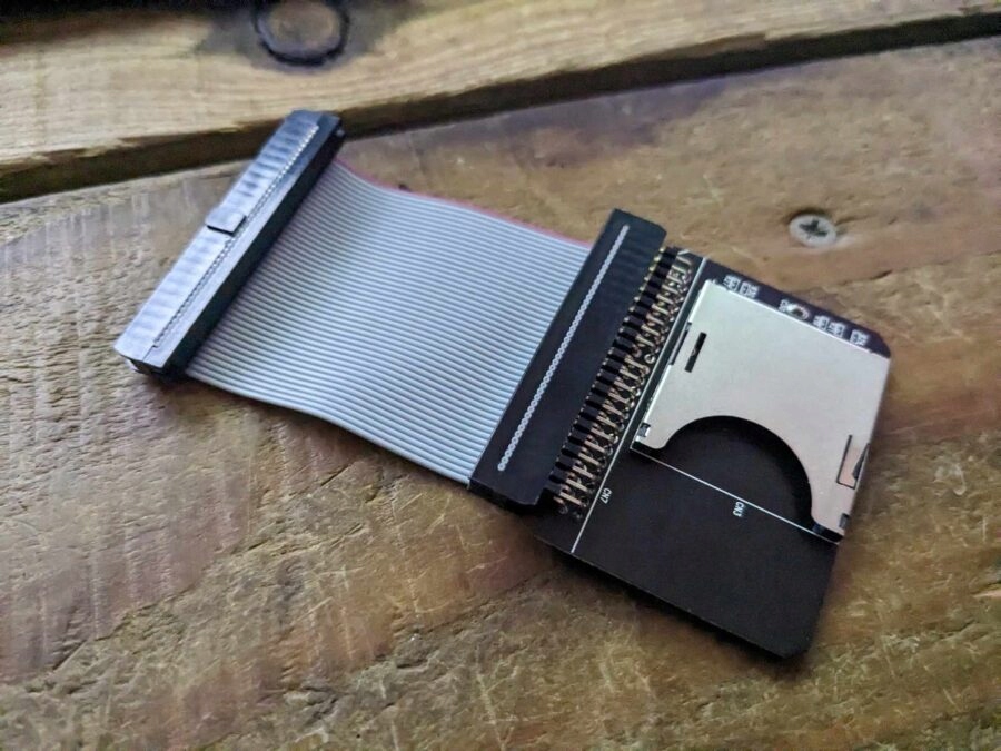 Тема дії-це одна карта з м'якою, щоб мати можливість підключити карту до Amiga необхідний адаптер IDE-SD, видно на фотографії зліва.