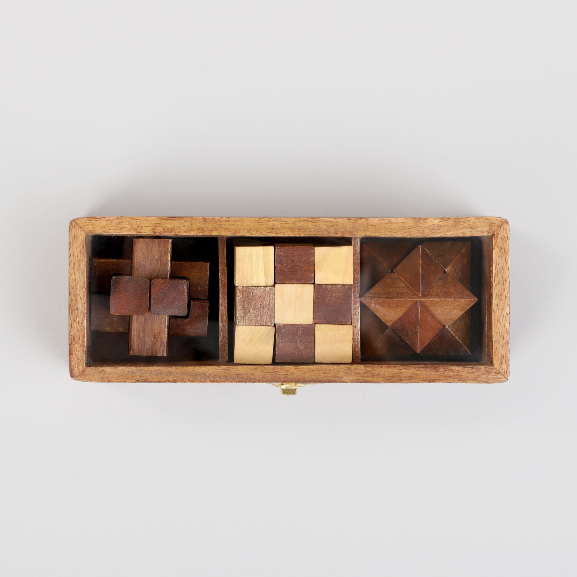 ✔️ Геометрична головоломка в три різні форми були поміщені в дерев’яну коробку розміром 17,75 x 6,5 x 6,5 см.