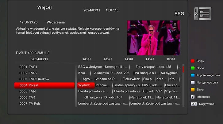 - Електронний телегід (EPG)