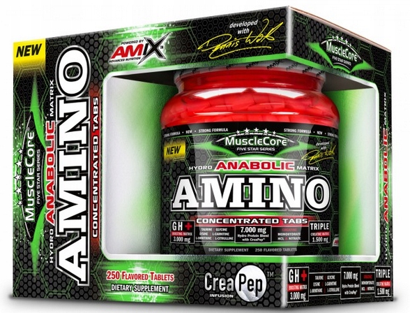 Amix Anabolic Amino - це дієтична добавка у формі таблеток, що містить амінокислоти з розгалуженим ланцюгом BCAA, екзогенні амінокислоти, L-глутамін і таурин. Цей препарат створений для тренувань людей, які хочуть підвищити свою працездатність і силу, прискорити регенерацію м'язів і мінімізувати ризик катаболізму.