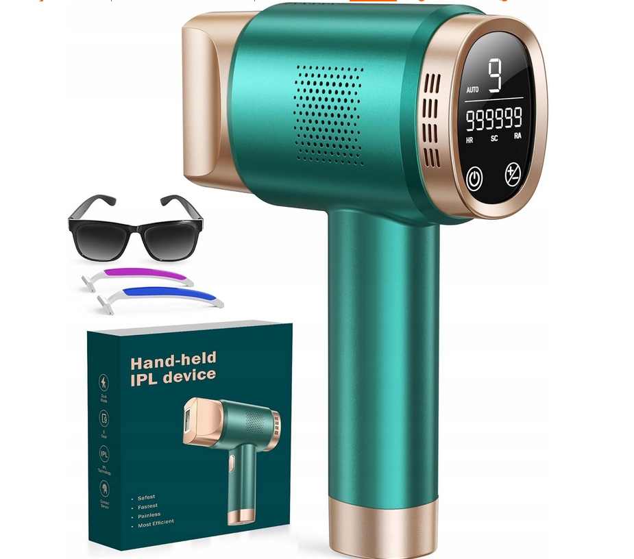 IPL Aminzer Laser Epilator - 999 999 Спалахи, 3 функції, РК, 9 рівнів потужності, безкоштовні захисні окуляри