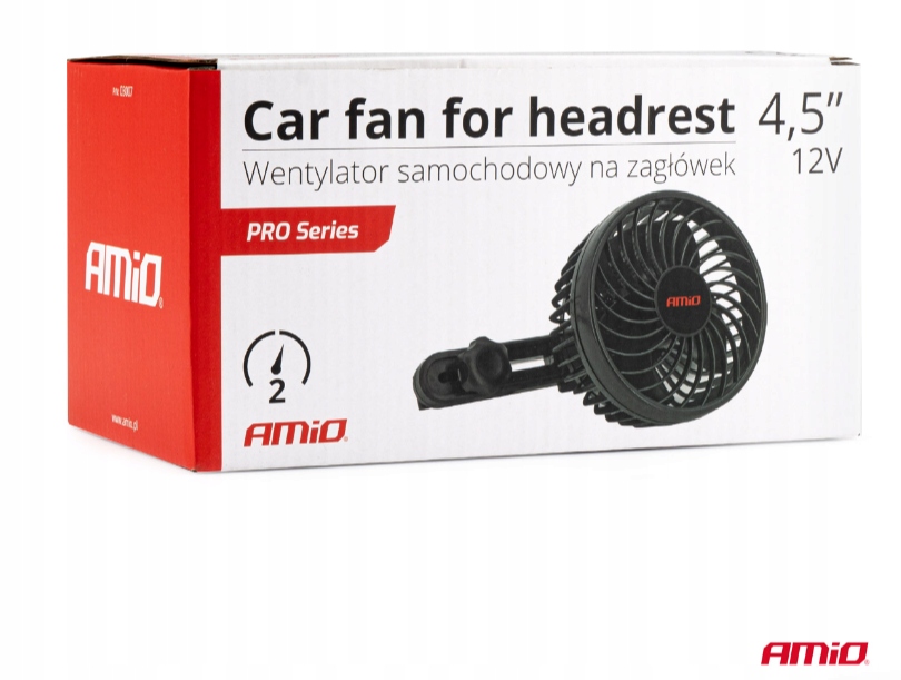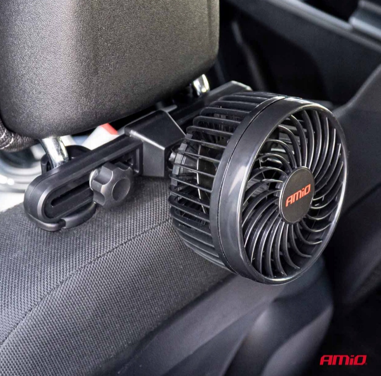 AMiO PRO FAN, АВТОМОБІЛЬНИЙ ВЕНТИЛЯТОР З ЖИВЛЕННЯМ ВІД АВТОМОБІЛЬНОЇ ЗАПАЛЮВАЛЬНИКИ НА 12 В, ВСТАНОВЛЕНИЙ НА ПІДГОЛОВНИК