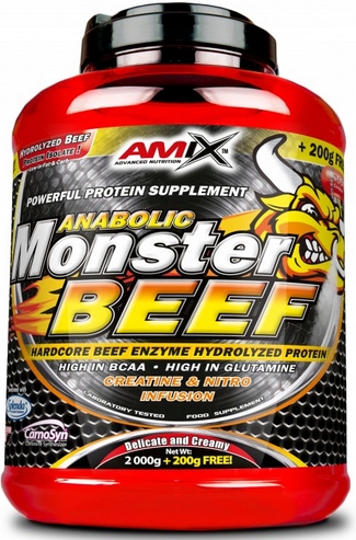 Anabolic Monster Beef Protein — це продукт, який на 90% складається з яловичого альбуміну, який наразі є найякіснішим джерелом білка на ринку. Завдяки гідролізу час перетравлення білка значно скорочується. Monster Beef також збагачений моногідратом креатину, таким чином збільшуючи енергетичний потенціал, енергію, регенерацію та зростання м'язової маси. Monster Beef також містить Nitro Shot Complex, завдяки якому всі необхідні інгредієнти будуть миттєво доставлені до м'язових волокон. Цей продукт також містить Phosphomatrix, який забезпечує всі необхідні мінерали, які відіграють ключову роль в організмі кожного спортсмена.