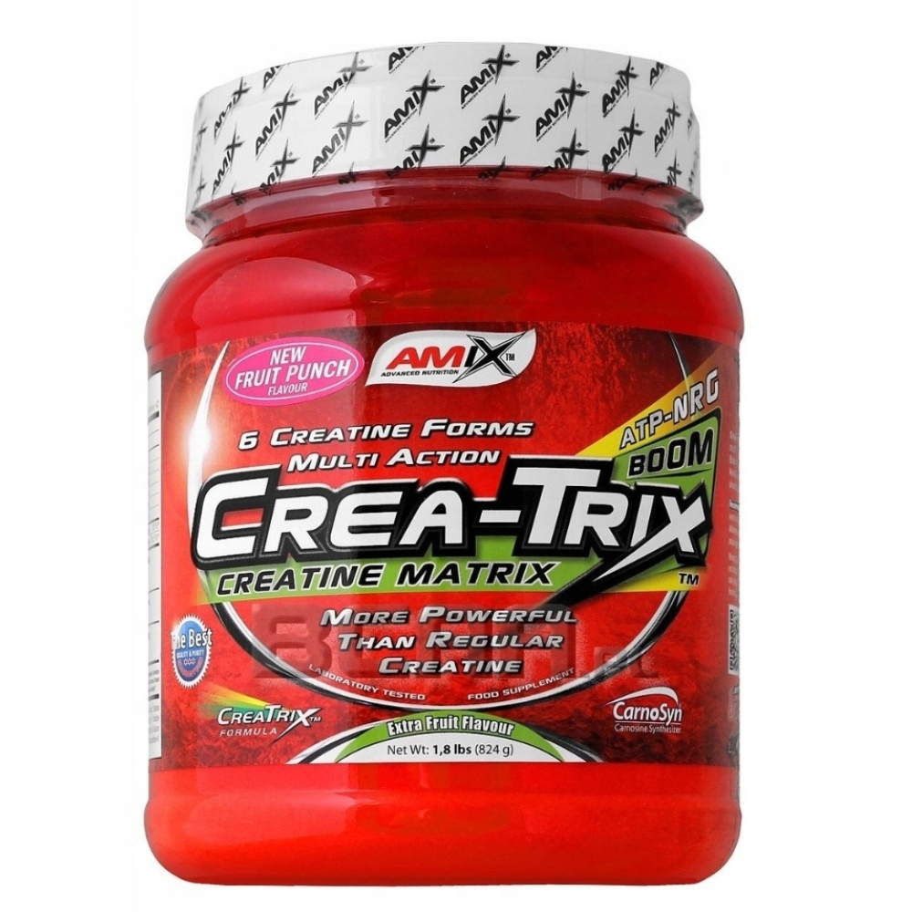 amix crea-trix -дієтична добавка, склад якого ґрунтується на 6 типах креатину і збагачувався бета-аланіном , що підвищує ефективність організму та покращує загальний стан тіла. Продукт містить дві форми креатинового яблука, моногідрат, цитрату, етилового ефіру HCl та kre-Alkaline . Завдяки цій комбінації активних інгредієнтів ви отримуєте збільшення сили, ефективності та м’язової маси . Основна дія креатину - підтримка синтезу білка , яка є основним матеріалом для будівництва м’язів, живить і зміцнює всю кісткову систему, прискорюючи загоєння травм та травм. для збільшення сили та для більш тривалої інтенсивності тренувань . На додаток до перелічених переваг, це також впливає на реконструкцію АТФ , тобто речовину, що відповідає за забезпечення енергії м’язів, , що дозволяє отримати кращі результати спорту та належне харчування м’язів. Креатин впливає на швидше регенерацію тіла після ряду вправ і зменшує відчуття втоми та втоми. У складі Amix CREA-Trix ми також знайдемо фосфат калію, кальцій та натрій, які підтримують економіку електролітів