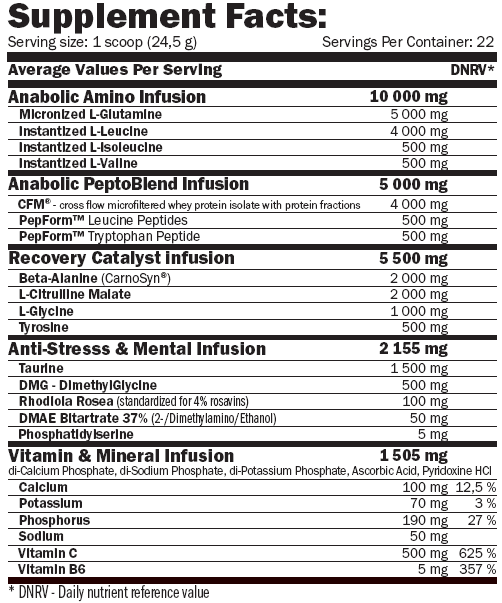 -Забезпечує дуже високу концентрацію BCAA у співвідношенні 8:1:1,