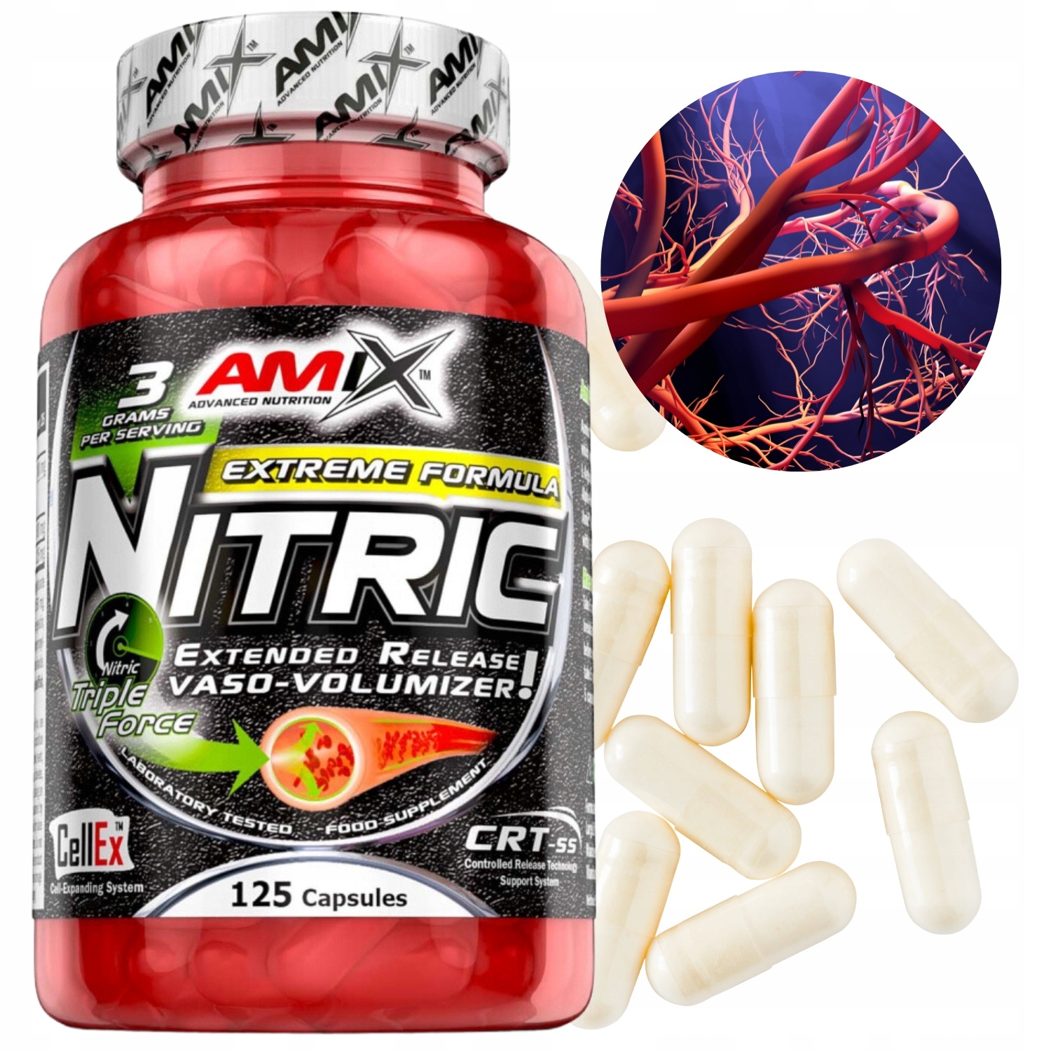 Amix™ Nitric - науково розроблений засіб для збільшення вироблення оксиду азоту, що призводить до збільшення сили, м’язової маси, витривалості, накачування та концентрації. Азотна покращує кровообіг, посилює синтез білка та забезпечує організм усіма необхідними поживними речовинами.