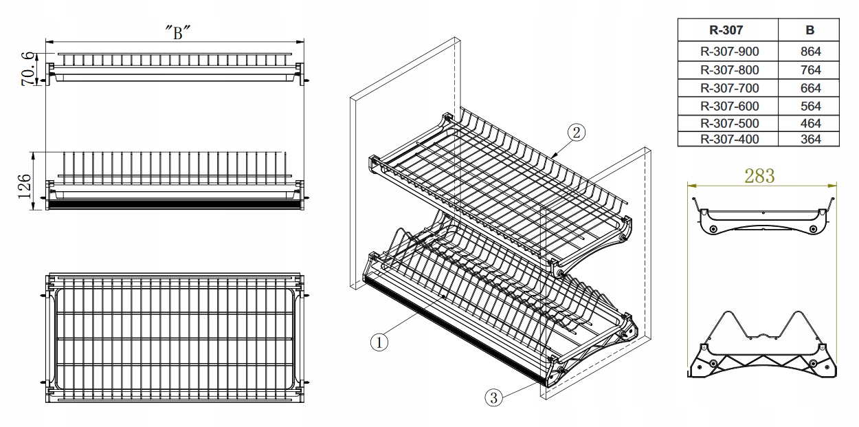 AMIX СУШАРКА ДЛЯ ПОСУДУ 2 ГОРИЗОНТАЛЬНІ ЛОТКИ ХРОМ 90 СМ
