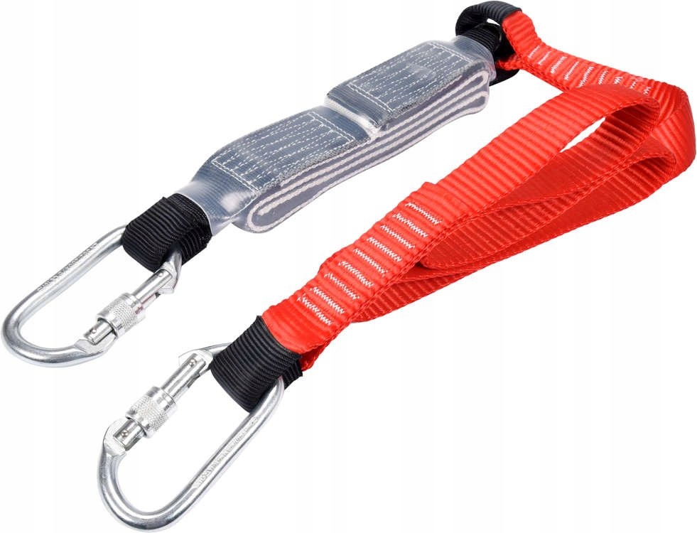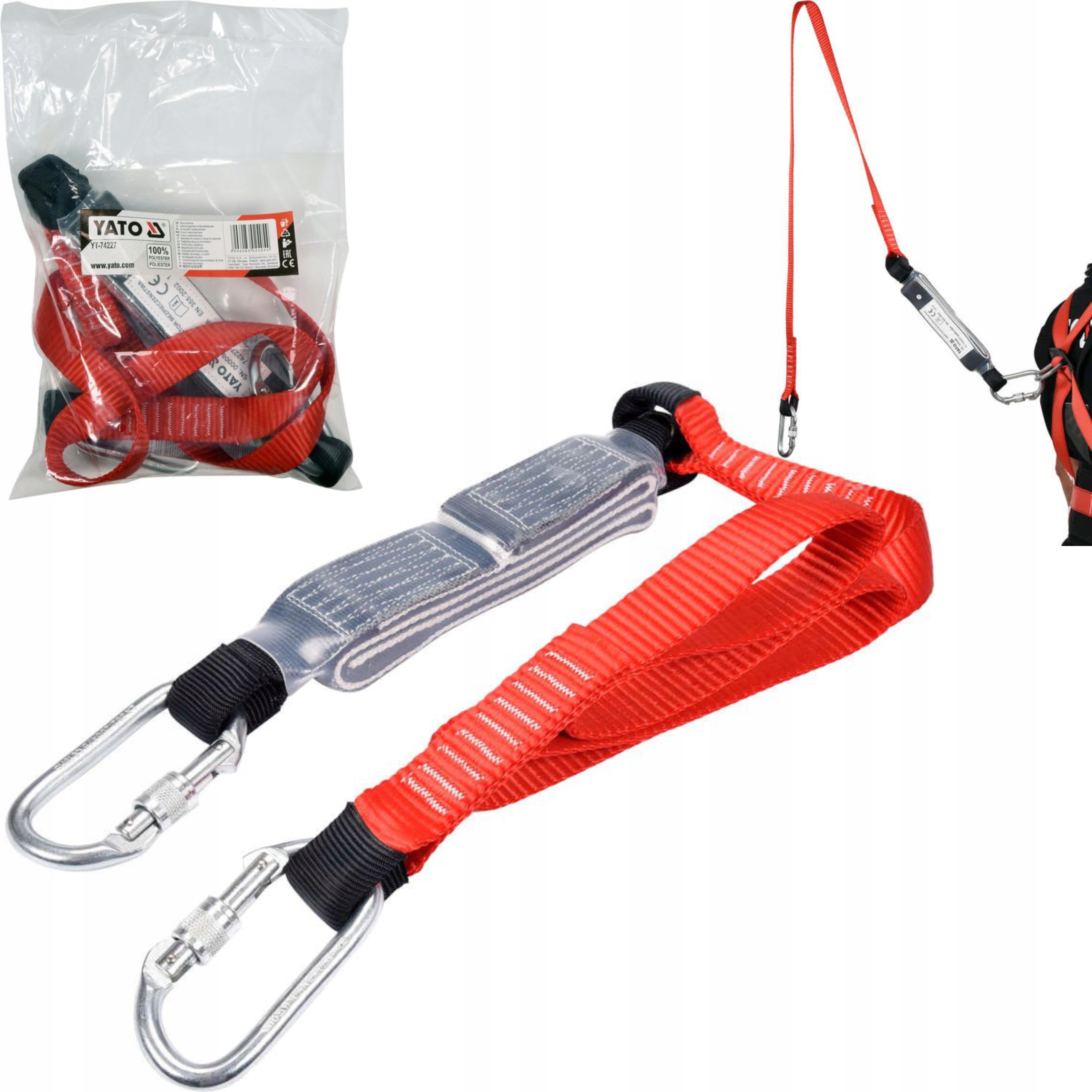 Захисний амортизатор YT-74227 з ременем і двома карабінами є елементом системи зупинки падіння, що з’єднує ремінь безпеки з точкою кріплення. Захисний амортизатор виготовлений з правильно прошитої поліефірної стрічки. Під час зупинки падіння спеціально розроблені шви поступово розкриваються, сповільнюючи швидкість падіння