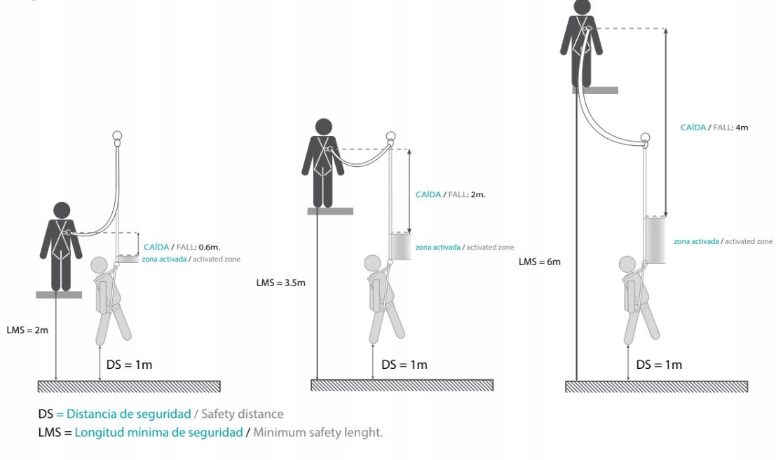 Точка кріплення має бути щонайменше 6 м від землі, щоб запобігти удару об землю під час падіння.