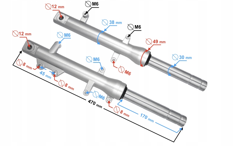 Амортизатори, лаги передні комплект СКУТЕР GY6 Barton Falcon Junak ZIP Romet