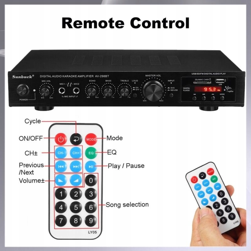 - 2-канальний Bluetooth-підсилювач з еквалайзером і MP3