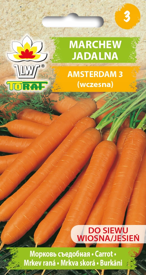 Ранній різноманітність. Коріння завдовжки 15 см, темно-помаранчеві, ранні фарбування, крихкі та соковиті. Дуже добре для соків та для прямого споживання та короткого строку. Потрібен легкий, родючий ґрунт, добре вирощений. Посія на глибину 1-2 см від кінця третього від кінця колекції V. від VIII до IX.
