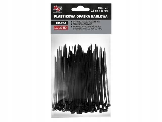 МА ПРОФЕСІЙНА ПЛАСТИКОВА КАБЕЛЬНА Стяжка - ЧОРНА 2,5 ММ X 80 100 ШТ