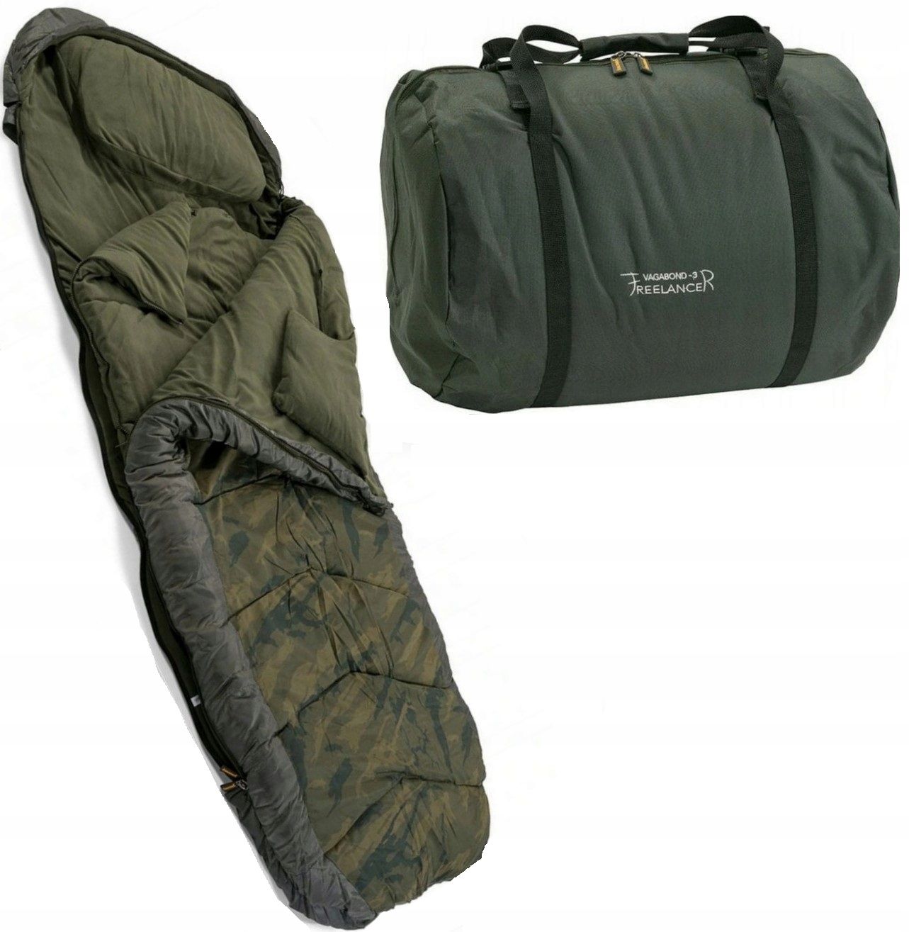 Цілком новою колекцією спальних мішків від Anaconda є серія Freelancer Vagabond, яка також може переконувати своїм дизайном. Серія Freelancer Vagabond має всі необхідні функції для приємного та спокійного сну. Водонепроникний зовнішній матеріал добре захищає від дощу, роси та мокрого ґрунту, а високоякісні вітрозахисні блискавки добре захищають від проникнення холоду. Щоб лише невеликий вітер міг донести холод зверху, у фрілансера Vagabond є додатковий вітроблок в області шиї. Спальний мішок також оснащений висувними рукавами в області ніг і голови, тому його можна легко прикріпити до ліжка. Для додаткового захисту спальника від ковзання прикріплений ремінь безпеки з кліпсою. Внутрішній матеріал спального мішка покритий ізоляційним флісом, що робить спальний мішок придатним і для холодних ночей. Freelancer Vagabond 3 складається з 3 шарів (1 шар знімається) і особливо підходить для прохолодних осінніх і весняних днів, а також для більш м’яких зимових днів, тому що ви можете зняти один шар і вирішити, наскільки теплим він повинен бути. Серія спальних мішків «нового покоління» доповнена висококласним дизайном завдяки абсолютно привабливому дизайну в стилі позаштатного камуфляжу, який змушує серця багатьох рибалок битися швидше, і вбудованій, але також знімній подушці.