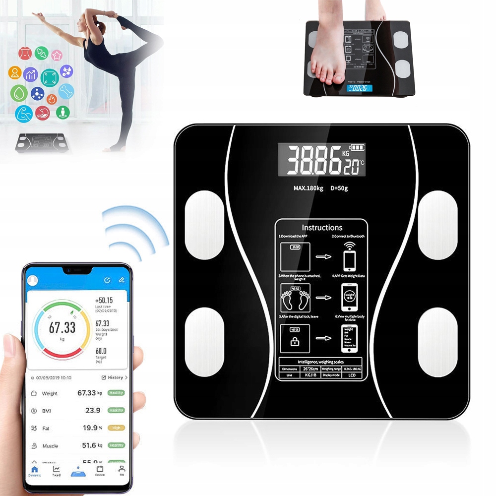 АНАЛІТИЧНА ВАГА BLUETOOTH ІМТ ТА МОНІТОРИНГ ЖИРУ 02-180 КГ ДЛЯ ФІТНЕСУ