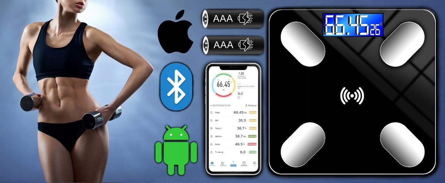 Вбудований модуль bluetooth допомагає робити точні й дуже детальні вимірювання ваги тіла, обчислює індекс ІМТ, вимірювання жиру в організмі, вміст води в організмі, а також кісткової та м’язової маси.