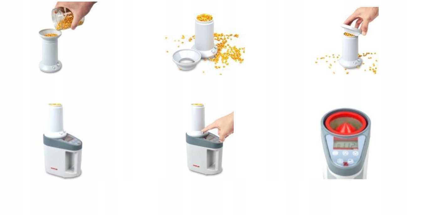 аналізується цілими зернами, що усуває необхідність підготовки зразків та шліфування. Щоб провести вимірювання, просто виберіть тип зерна в меню, поставте зразок (цілу квасолю) та прочитайте результат. Автоматична система компенсації температури відповідає за корекцію впливу зовнішньої температури, забезпечуючи точні результати. Лічильник вологості MC2000 був розроблений для вимірювання вологості багатьох видів зерен.