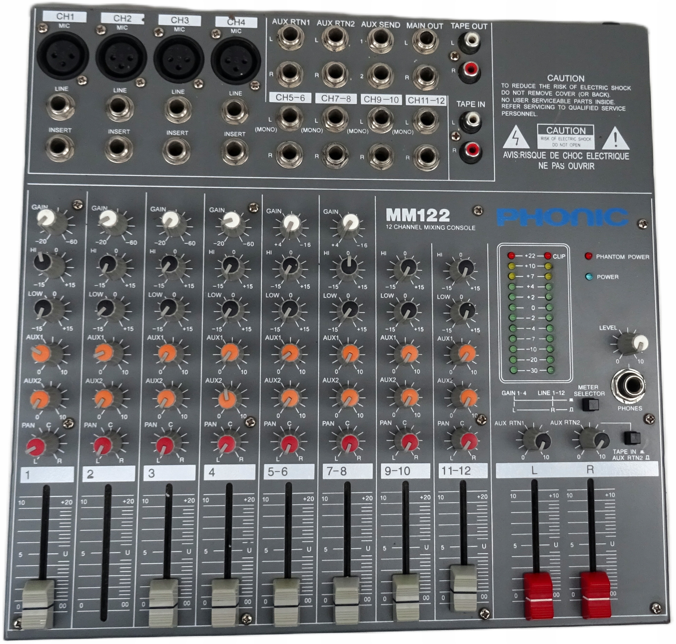 Аналоговий мікшер Phonic MM122 12 Kanałów | Фантомне живлення 48V | Для студії та сцени