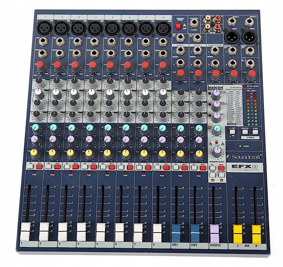 Компактні мікшерні пульти Soundcraft EFX поєднують чудовий звук і функціональність популярної серії EPM із вбудованим 24-розрядним процесором ефектів Lexicon.