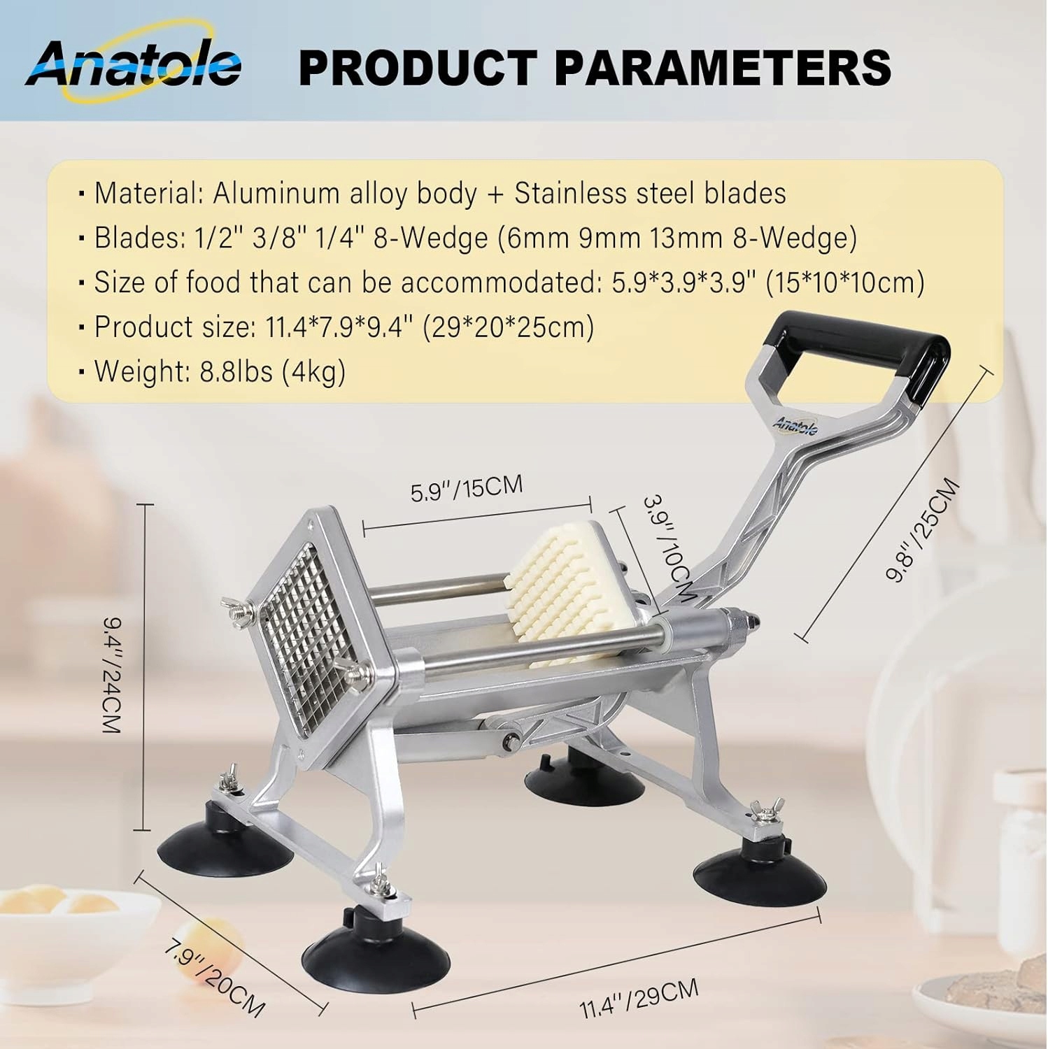 Анатольний комерційний різак для смаження з 1/2 "3/8" 1/4 "8-кловом леза для овочів та фруктів, професійна харчова сітка з картопляними присосними чашками, морквою, огірками, цибулею