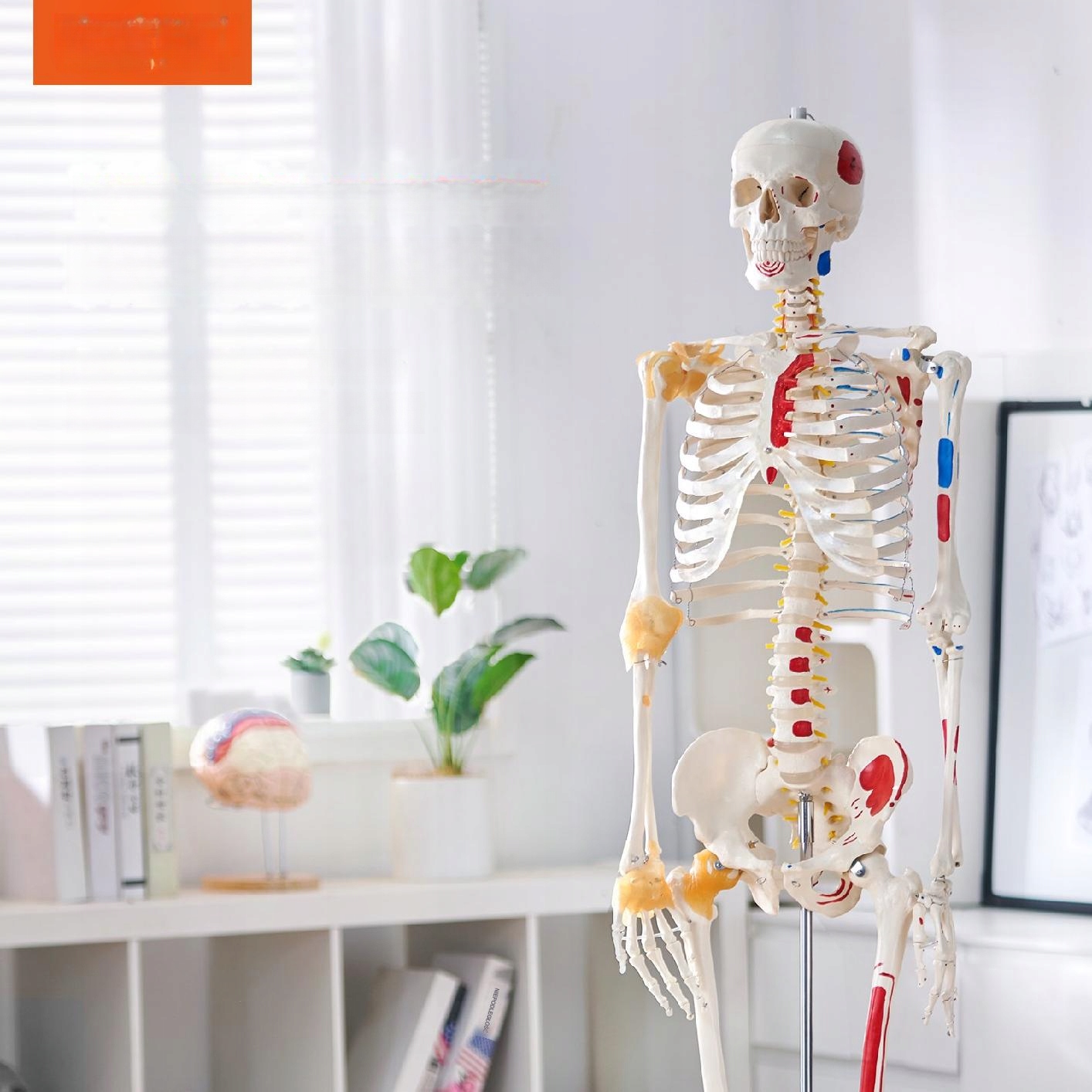 Наша модель людського скелета має знімну конструкцію, яка дозволяє легко складати та розбирати, дозволяючи учням спостерігати та вивчати анатомію людини більш інтуїтивно. Завдяки міцній конструкції модель залишається на місці під час демонстрації, що запобігає її ковзанню.