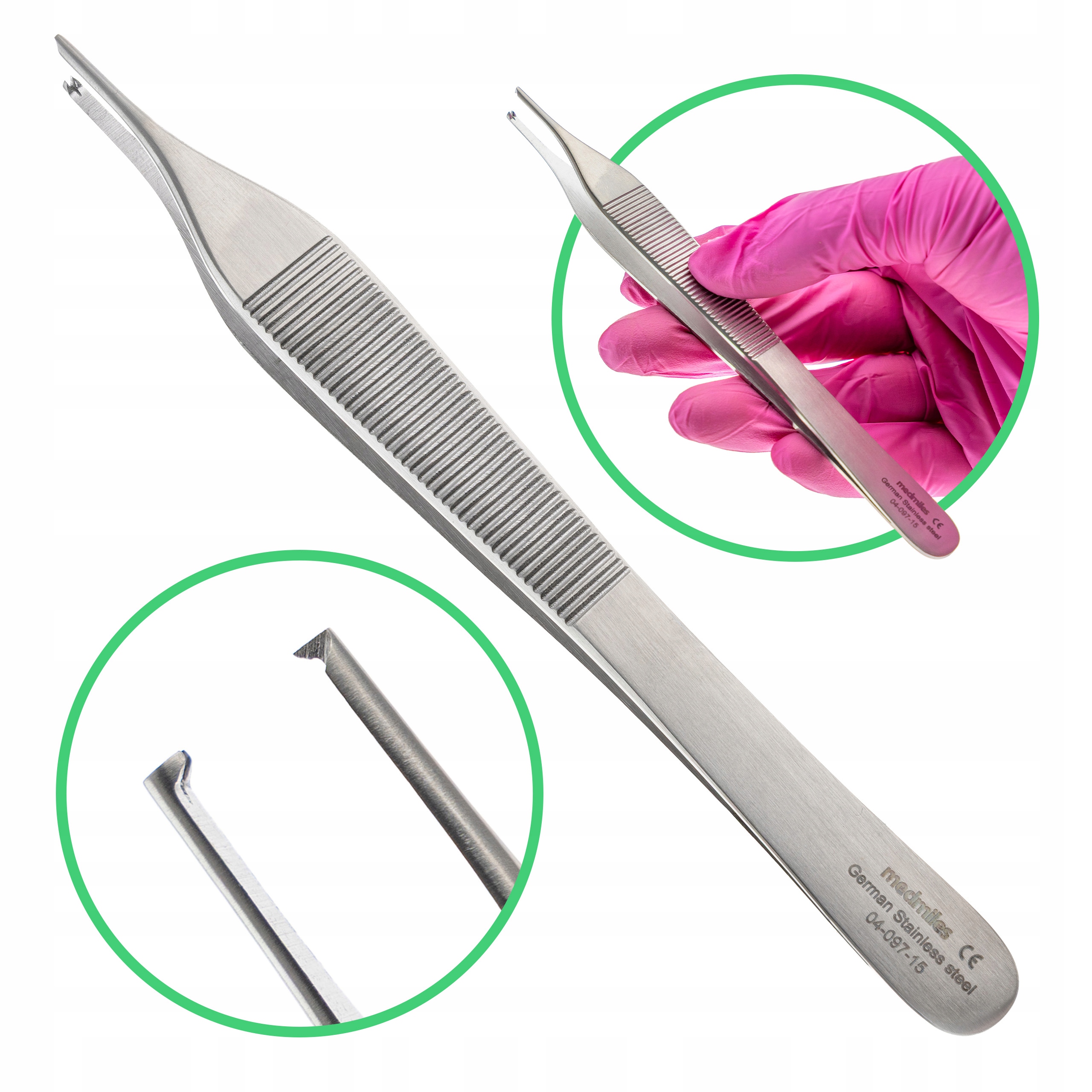 Анатомічний пінцет Адсона з зубчиком 1:2, нержавіюча сталь