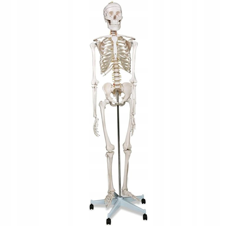 Понад 200 точно відтворених кісток дозволяють зазирнути під шкіру людського тіла. Щоб ви також могли перевірити, що у вас всередині голови, череп розроблено таким чином, щоб його можна було розгорнути. У голові взагалі є й інші цікаві деталі. Нижня щелепа рухлива, різець або ікла можна висмикнути. Досліджуйте тіло за допомогою скелета анатомії людини. Навчальна графіка у форматі плаката допоможе вам краще зрозуміти тіло. Цей анатомічний скелет, виготовлений з міцного ПВХ, прослужить довго. Тож ви можете легко ампутувати їй ногу та прикріпити її знову. Те ж саме стосується і інших кінцівок. Цей анатомічний скелет особливо підходить для використання на шкільних уроках біології, оскільки він також має підвіску та підставку на коліщатках, що дозволяє переміщувати його з класу в клас.