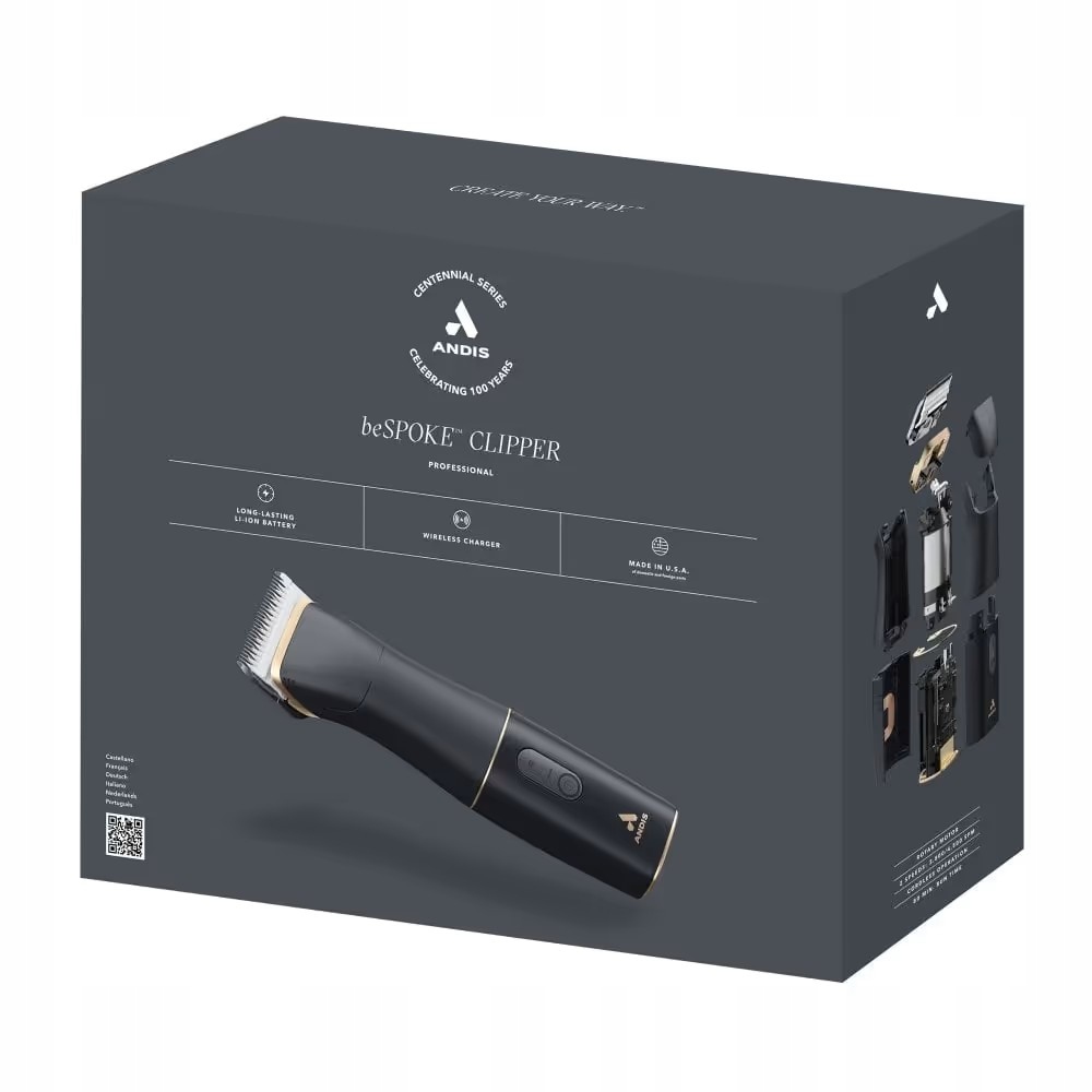 Потужний, високий двигун з двома швидкостями, забезпечує до 3800 SPM (подача в хвилину), завдяки якому ви можете бути впевнені, що ця машина буде впоратися з будь -яким типом волосся, також з цим густим і шерстковим. Тонкий і легкий корпус, закінчений чорним килимком, дозволяє комфортно працювати, не відчуваючи втомлювальної руки. Набір включає лезо, що займається Ceramicedge № 10 (1,5 мм), набір з 4 кріплення відстані з нержавіючої сталі та два літій-іонні батареї, які забезпечують до 90 хвилин. працювати над кожним із них. Вбудований індикатор -світлодіод повідомляє про необхідність їх заряджати. Крім того, разом з машиною ви отримуєте комфортний, індуктивний зарядний пристрій, сумісний з іншими пристроями, які підтримують індукційну зарядку, наприклад. мобільний телефон. Машина Andis Bespoke має рукоятку, до якої леза різних виробників, наприклад Остер, Мозер, Хенігер, Уол тощо