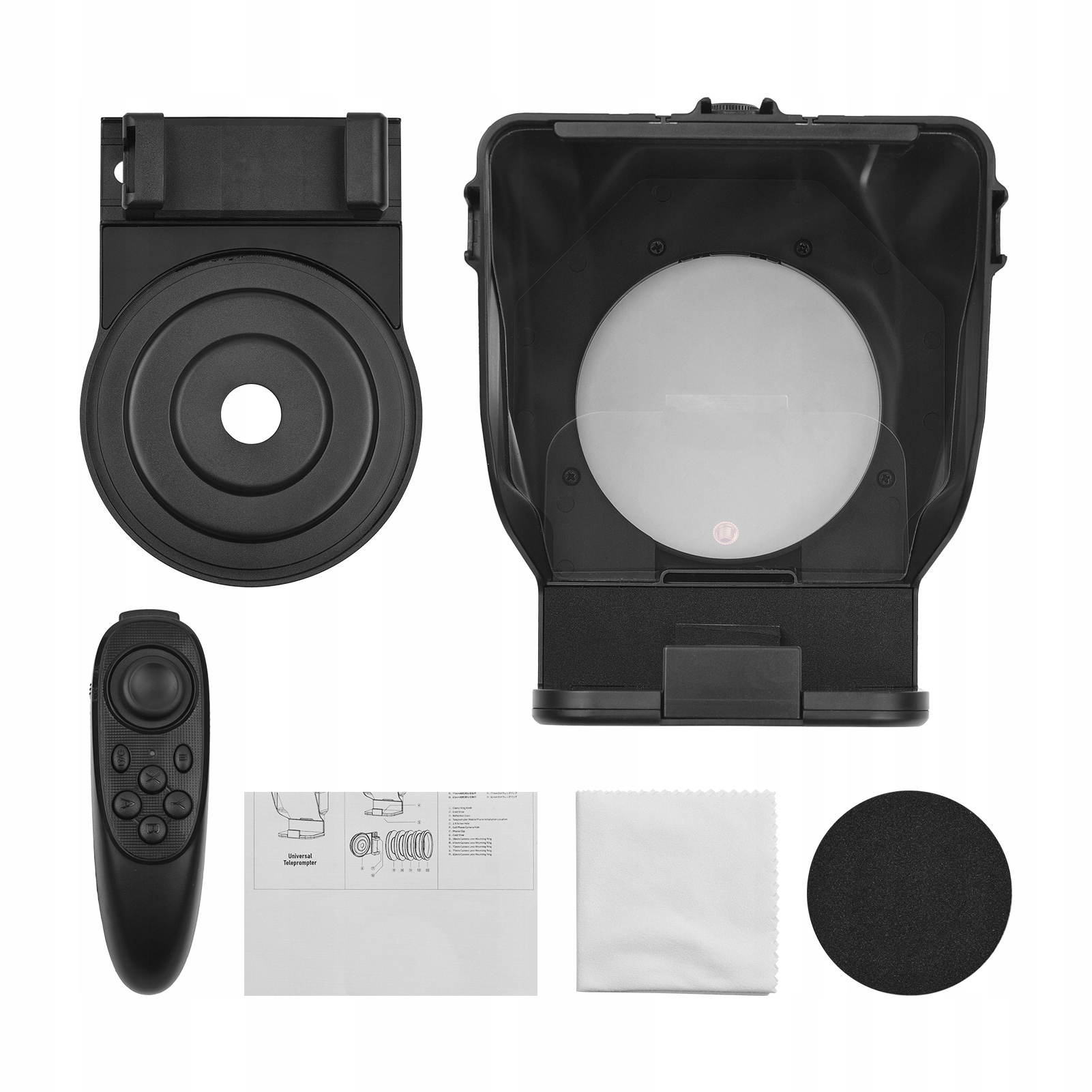 Завдяки адаптеру для тримача телефону, який легко встановити, телесуфлер готовий до роботи лише за кілька кроків; нижній роз’єм на 1/4 дюйма дозволяє під’єднати штатив.