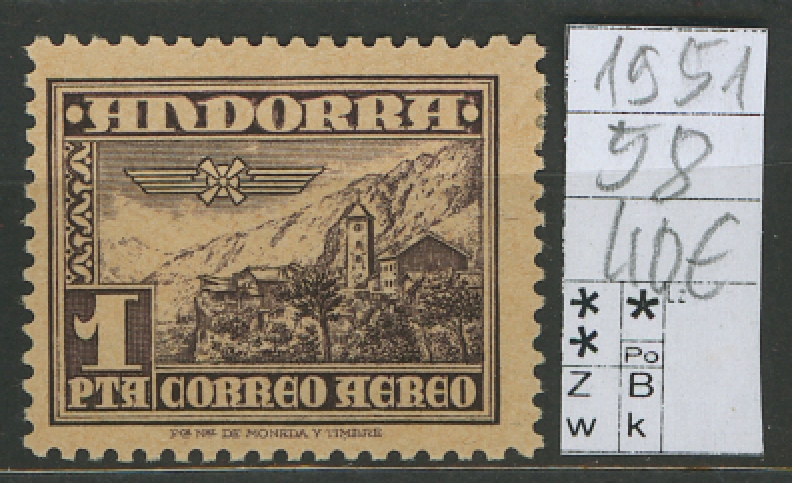 Andorra, 1951, Mi 58* 40 євро. Я надсилаю пріоритетну зареєстровану пошту.
