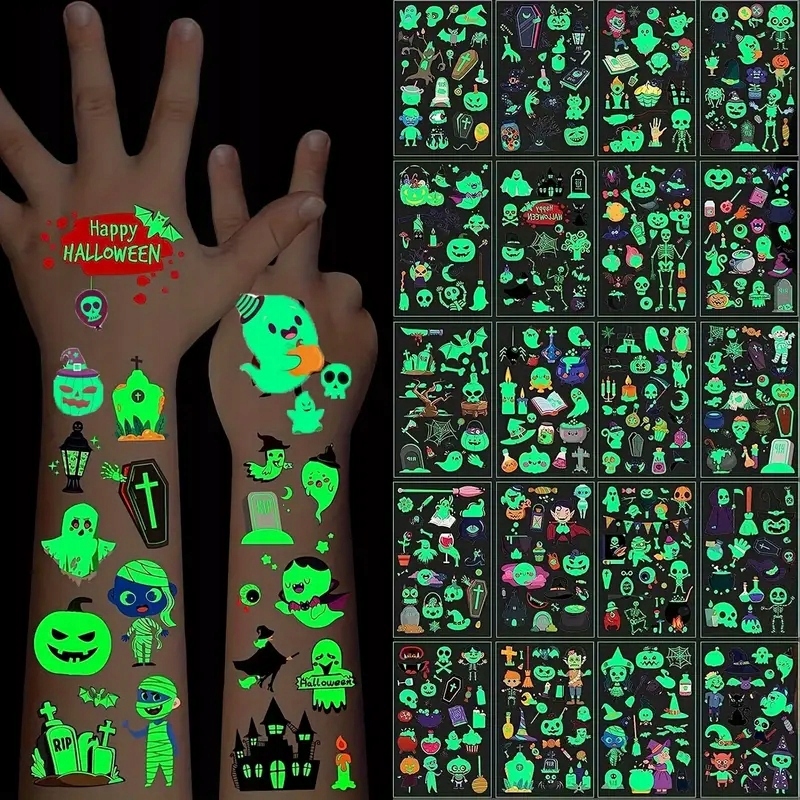 Здивуйте всіх унікальним набором світяться в темряві татуювання! Ідеально підходить для вечірок, фестивалів і вечорів Хелловіна. Створіть незабутнє враження на будь-якій вечірці за допомогою барвистих татуювань, які оживають, коли вимикають світло!
