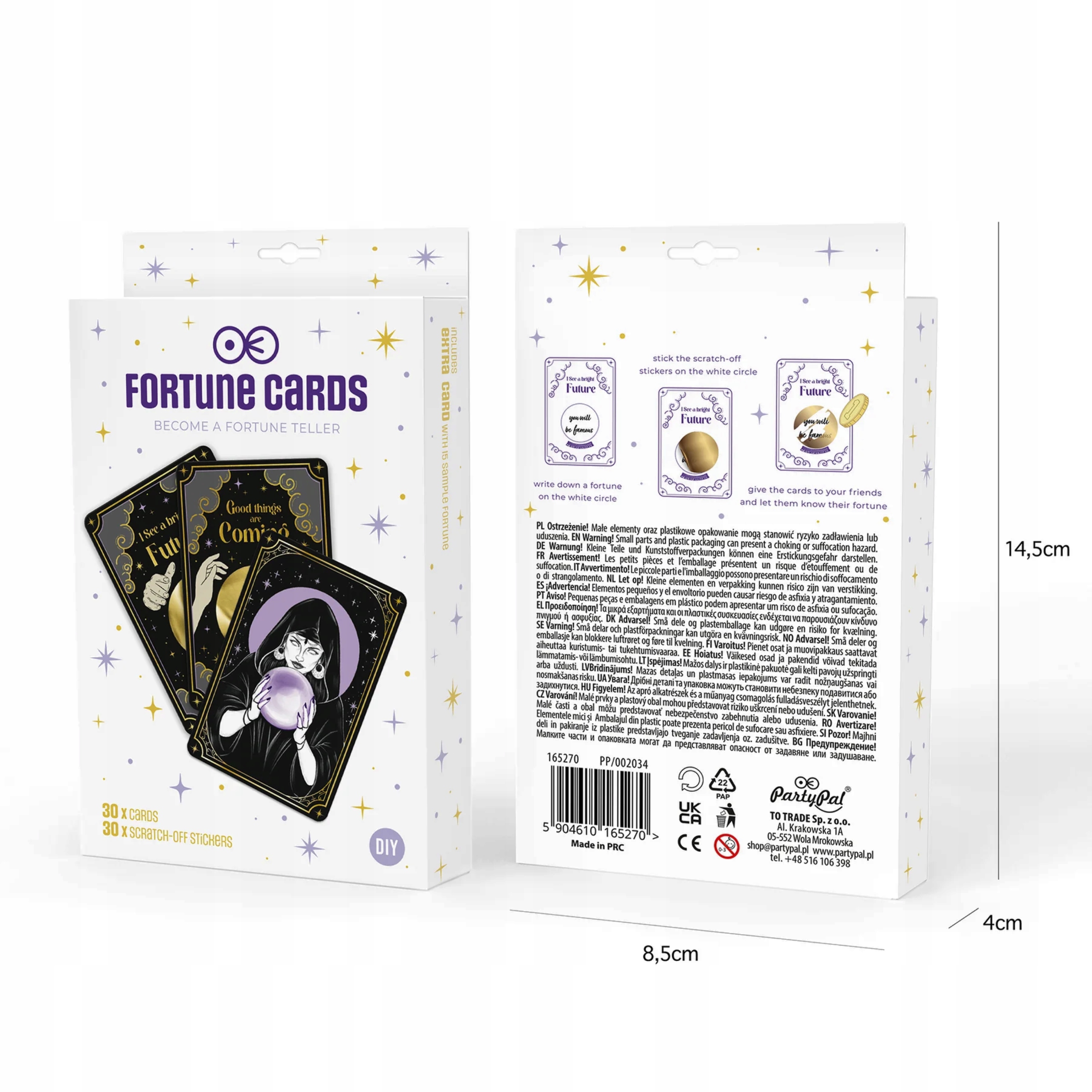 З гадальними картами ви створите неповторну атмосферу, сповнену таємниць та емоцій. Завдяки їм кожне ворожіння стане захоплюючою пригодою, яка розважить і здивує учасників. Картки були розроблені таким чином, що кожен міг записати власну долю, а потім приклеїти до неї скретч-картку. Це чудовий спосіб відсвяткувати традицію в сучасному стилі та додати унікального характеру вашій події