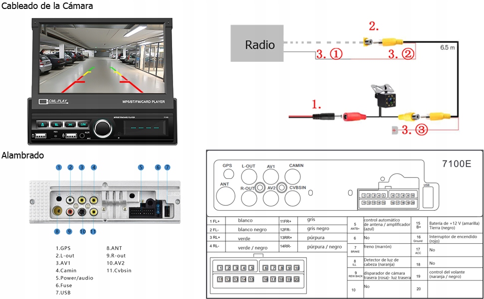 Автомагнітола з камерою заднього виду - з водонепроникною камерою заднього виду. Заднє зображення автоматично відображається на екрані MP5, коли автомобіль припарковано, і ви повертаєтеся на сторінку радіо, коли завершите паркування.