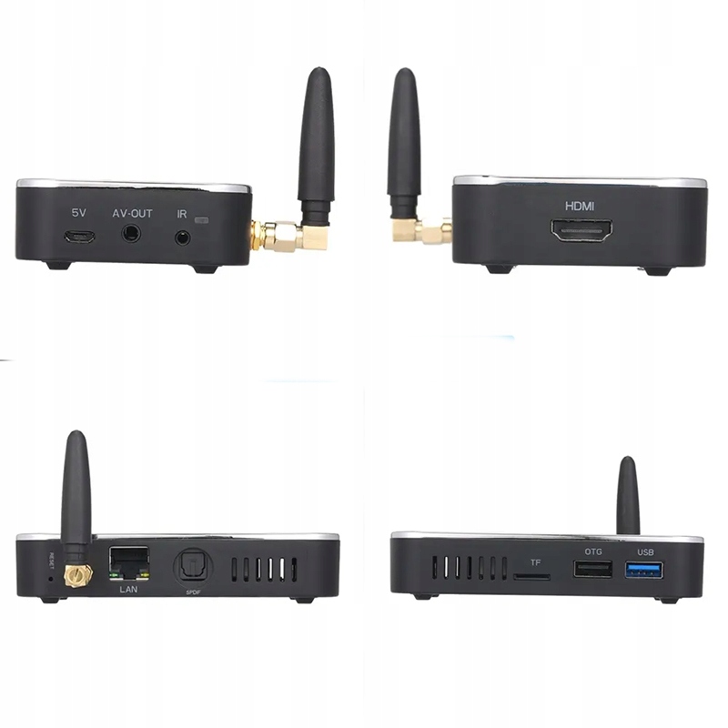 - Входи та виходи: 1x HDMI Out, 1x USB 3.0, 1x USB 2.0, 1x пристрій для читання карт Micro SD, 1x RJ-45, 1x CVBS композитний аудіо/відео, 1x роз’єм живлення