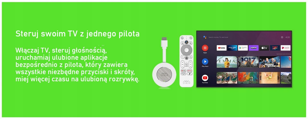 USB-C використовується для додаткового підключення декодера DVB-T2, що дозволяє приймати новий стандарт наземного телебачення H.265 HEVC. У цій пропозиції разом із коробкою Android ви отримуєте ефірний декодер.