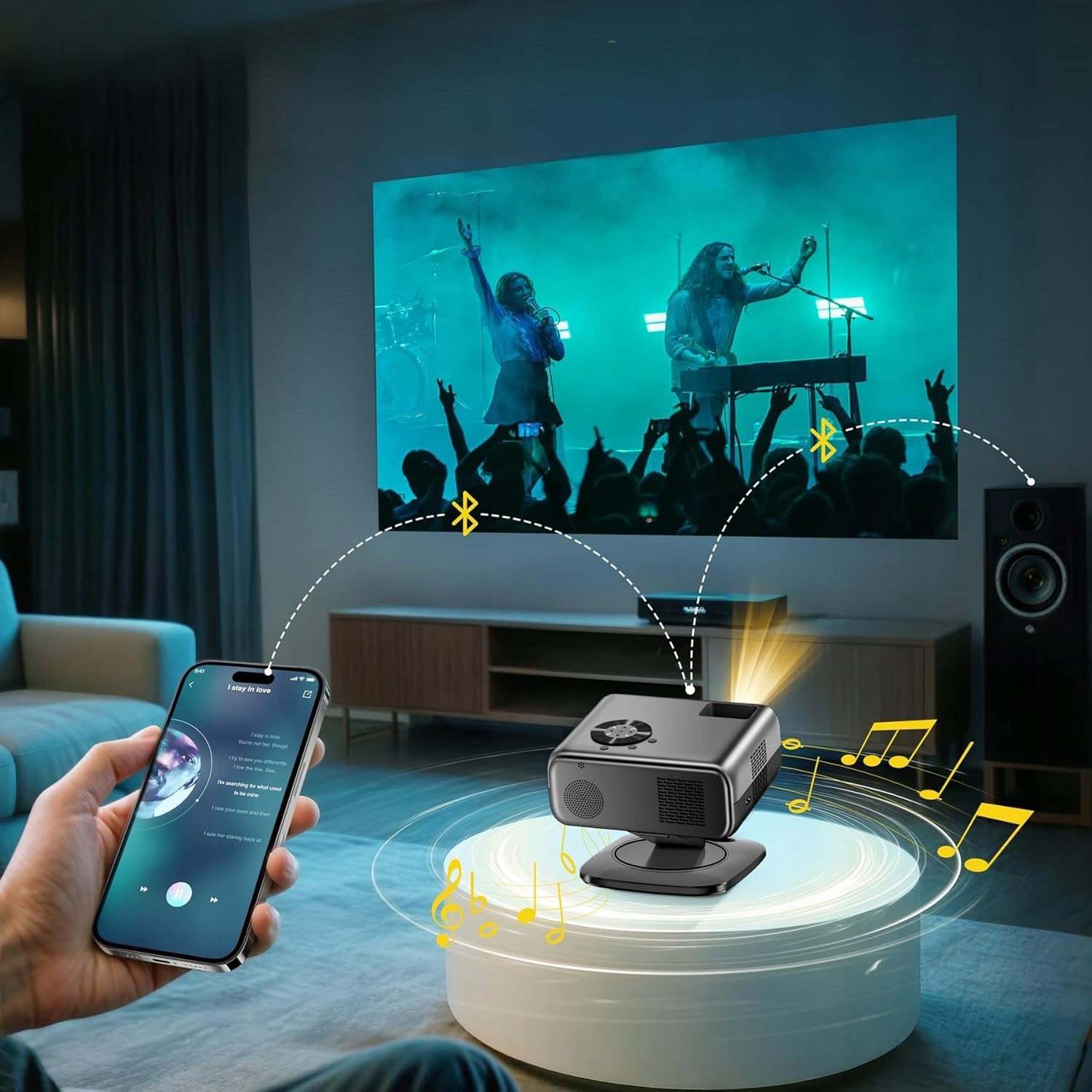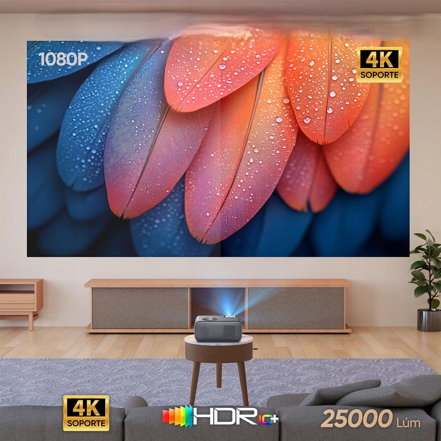 - Дозволяє проеціювати на стіну, стелю, у будь-якій кімнаті чи на вулиці.