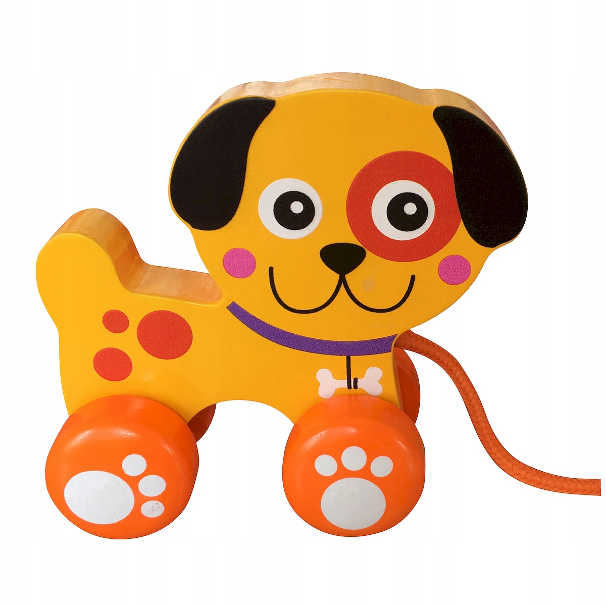 Іграшка комплектується міцною мотузкою, завдяки якій дитина легко тягне собаку за собою. Шнурок досить довгий, щоб забезпечити комфорт використання, але в той же час безпечний.