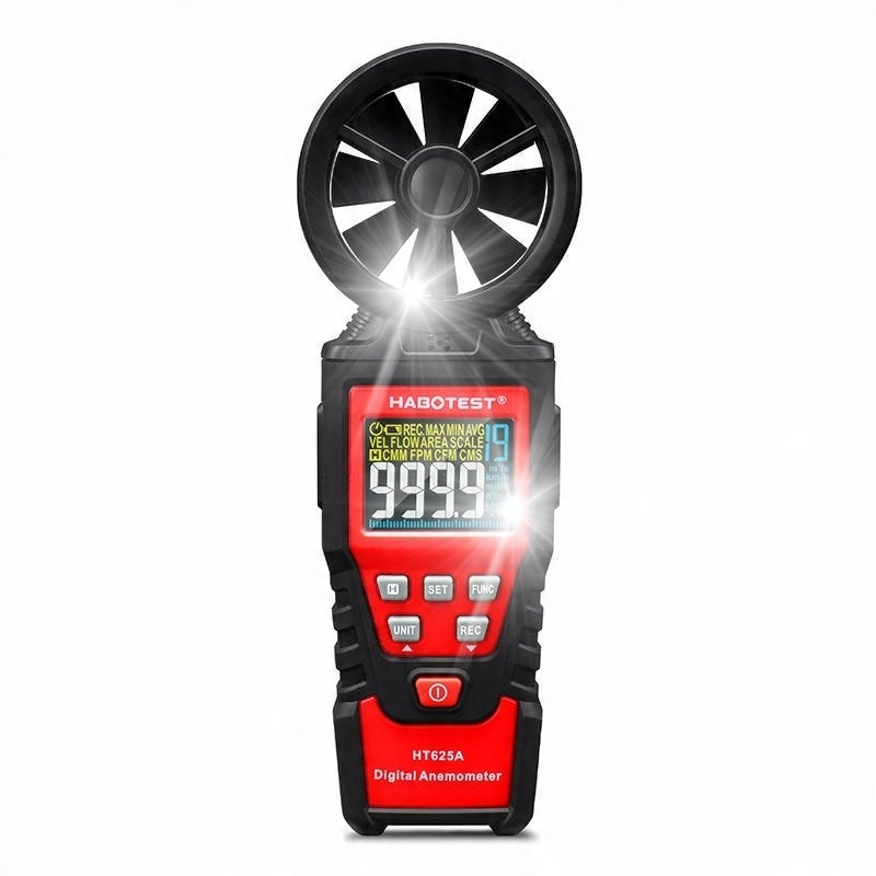 HT625A - це функціональний анемометр високої чутливості. Він був обладнаний ротором 8-лезу та кольоровим HD-дисплеєм. Для його джерела живлення потрібно 3 батареї AAA 1,5 В. Це дозволяє робити вимірювання в різних підрозділах. Легкий, зручний і портативний - це здивує вас простим та зручним обслуговуванням.